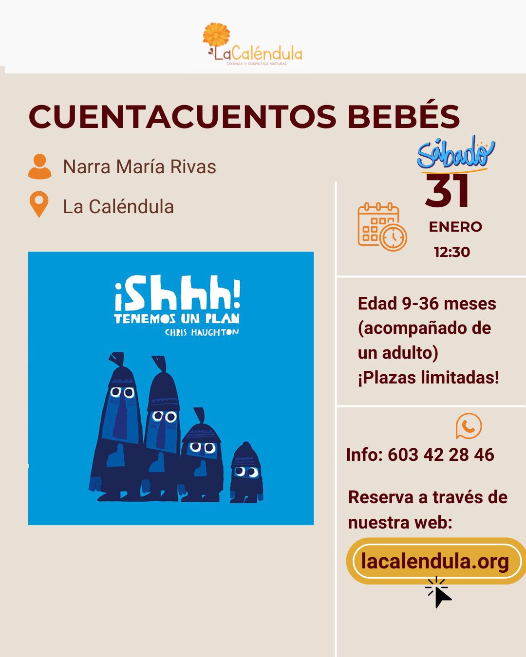 Este sábado, en La Caléndula, compartimos un cuentacuentos especialmente pensado para bebés, donde el ritmo, la imagen y la voz crean un espacio de calma y atención compartida.